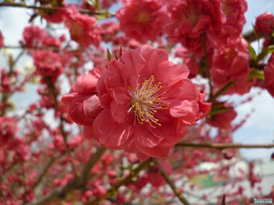 | なんだか綺麗な花を咲かせている木を発見です。季節的に梅かと思ったら桃なんですね。 |