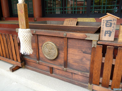 | お賽銭箱に戎神社の神紋が有ります。柏紋ですね。 |